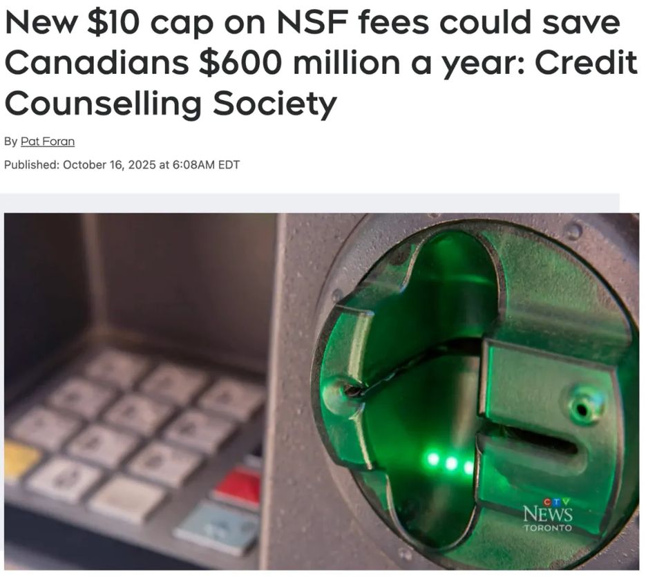在加拿大,如果账户余额不足支付账单,银行通常会收取“资金不足费”(Non-Sufficient Funds Fee,简称 NSF)。而这笔费用常常让普通人苦不堪言,即便只是少了一块钱,银行也能收你近